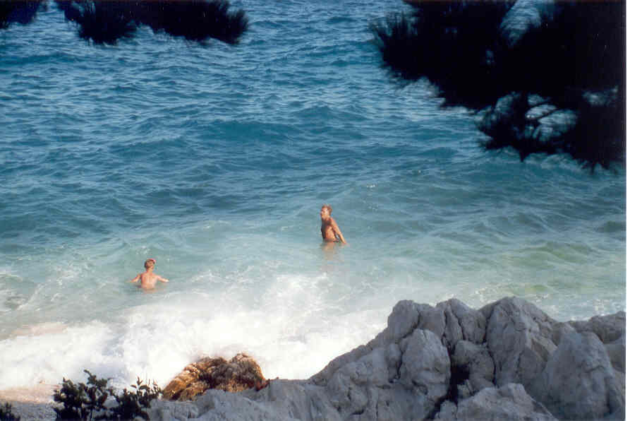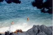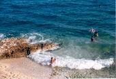 Malereien auf Stein an einsamen Stränden auf der Insel Rab